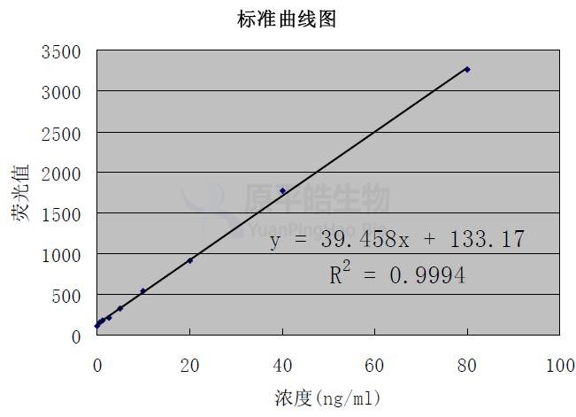 3.2.3标准曲线的制备:倍比稀释后的各梯度标准品溶液和染料工作液各取100ul混匀,避光室温放置5min。