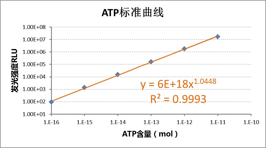 (2)根据ATP标准品与相应发光强度制作ATP-RLU标准曲线。